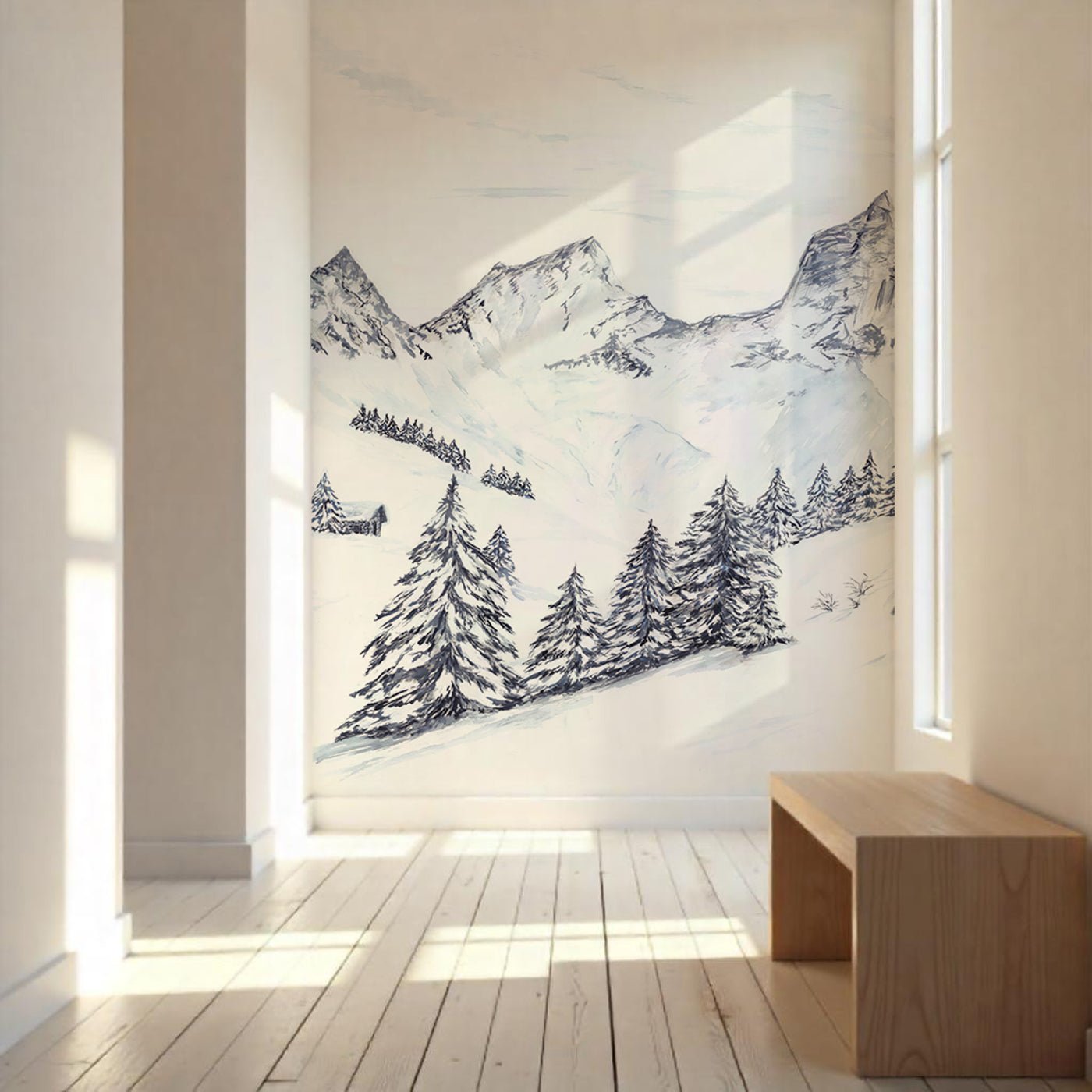 Idéal pour une décoration de chalet raffinée et intemporelle, ce papier peint montagne haut de gamme apporte chaleur, lumière et authenticité. Inspiré des cimes enneigées et des horizons alpins, il évoque l’atmosphère unique des grands espaces, entre nature et art.