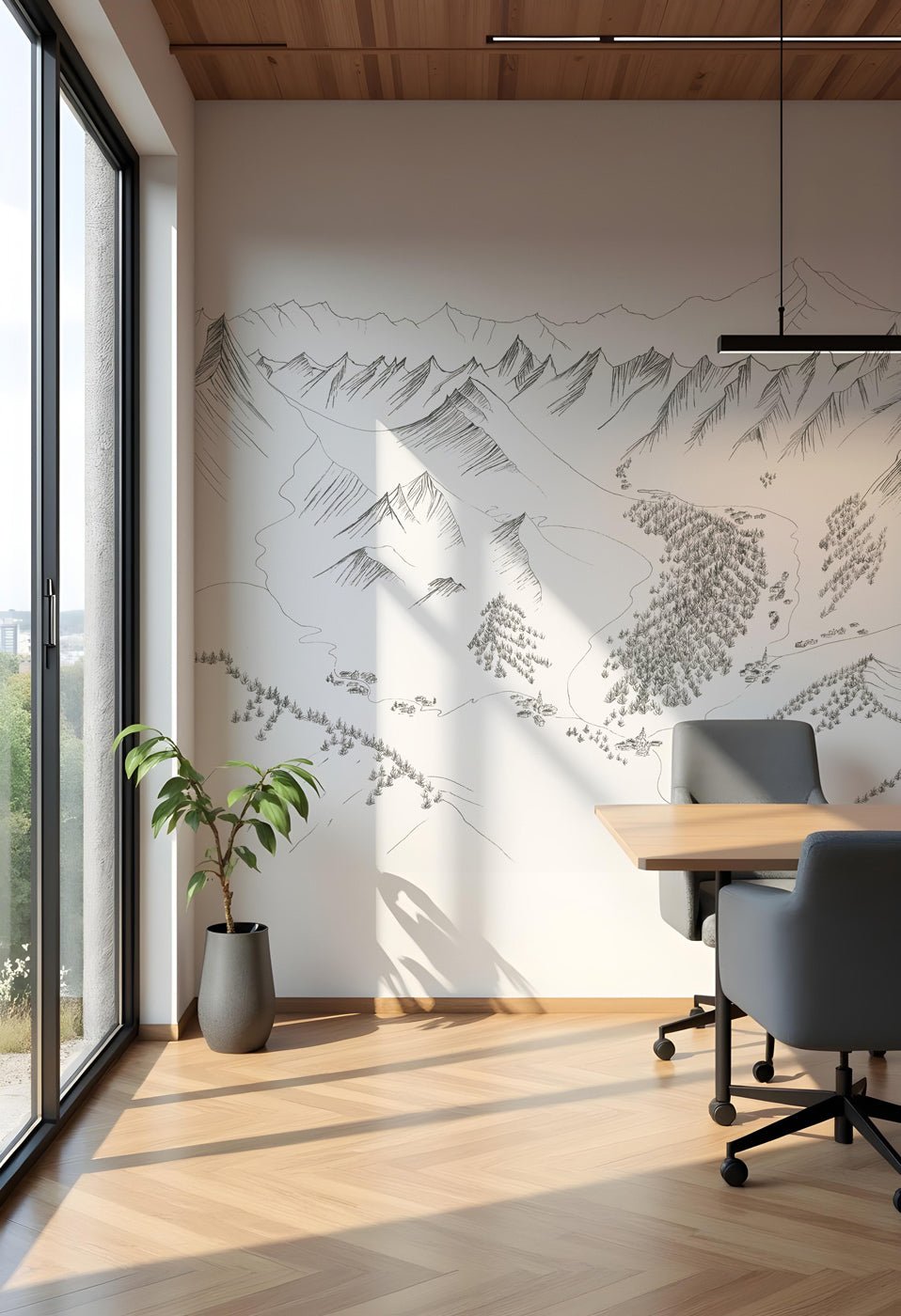 Idéal pour une décoration de chalet élégante et intemporelle, En Piste vous invite à voyager entre nature, sport et esthétisme. Une fresque murale unique qui transforme vos murs en panorama vivant.