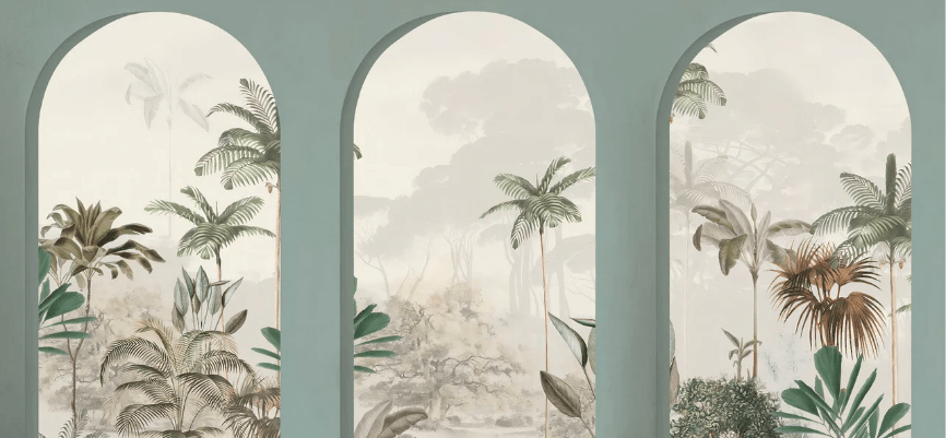 Papier peint arches luxuriantes vert