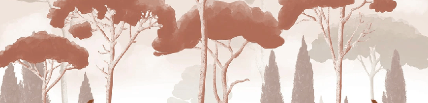 Papier peint cyprès pins et herbes de la pampa terracotta