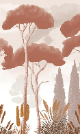 Papier peint cyprès pins et herbes de la pampa terracotta