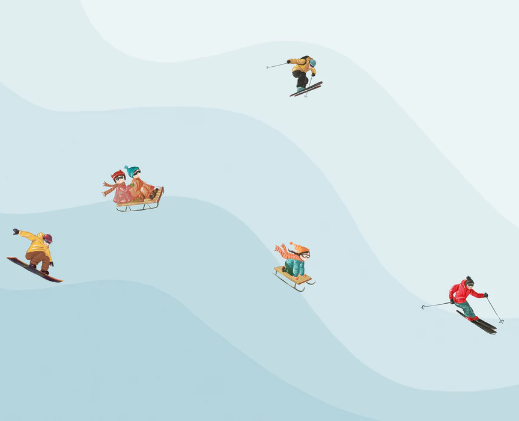 Papier peint enfant skieurs bleu
