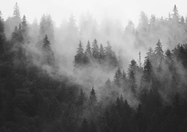 Papier peint forêt brumeuse noir et blanc