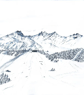 Papier peint montagne Megève – Fresque artistique peinte à la main