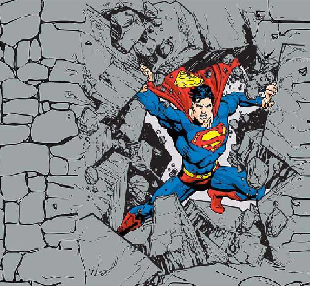Papier peint panoramique héro superman BD démolition force mur