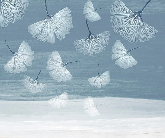 Papier peint panoramique japandi blue gingko
