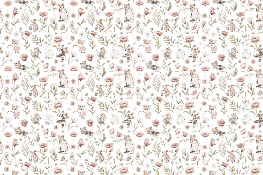 Papier peint à motif pour enfant - Le jardin des petites souris