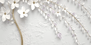 Papier peint panoramique trompe l'oeil arbre fleuri 3D