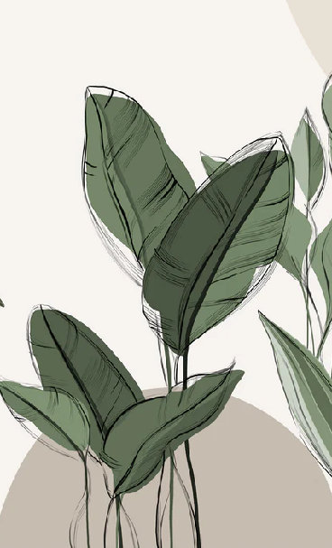Papier peint panoramique végétal graphique taupe