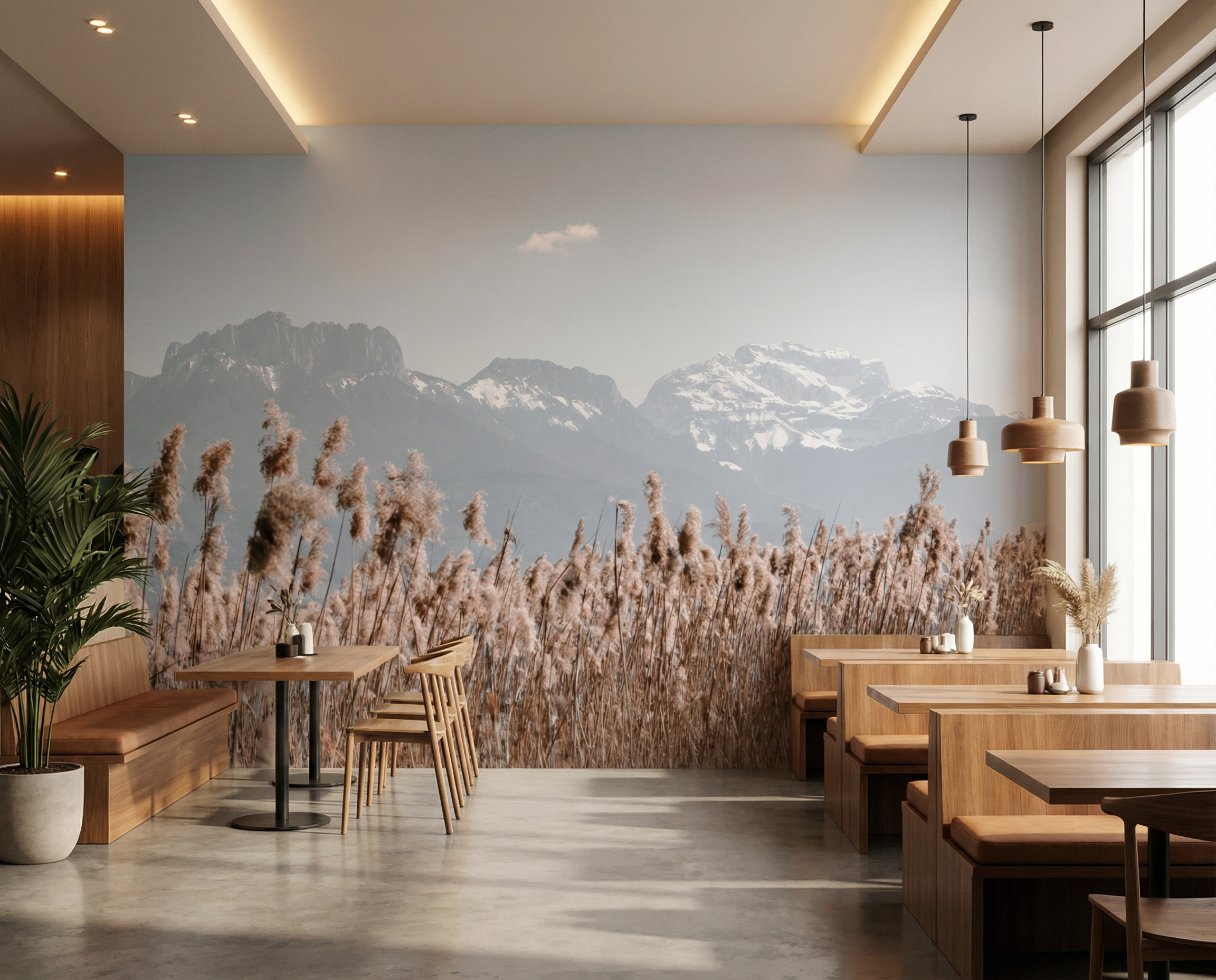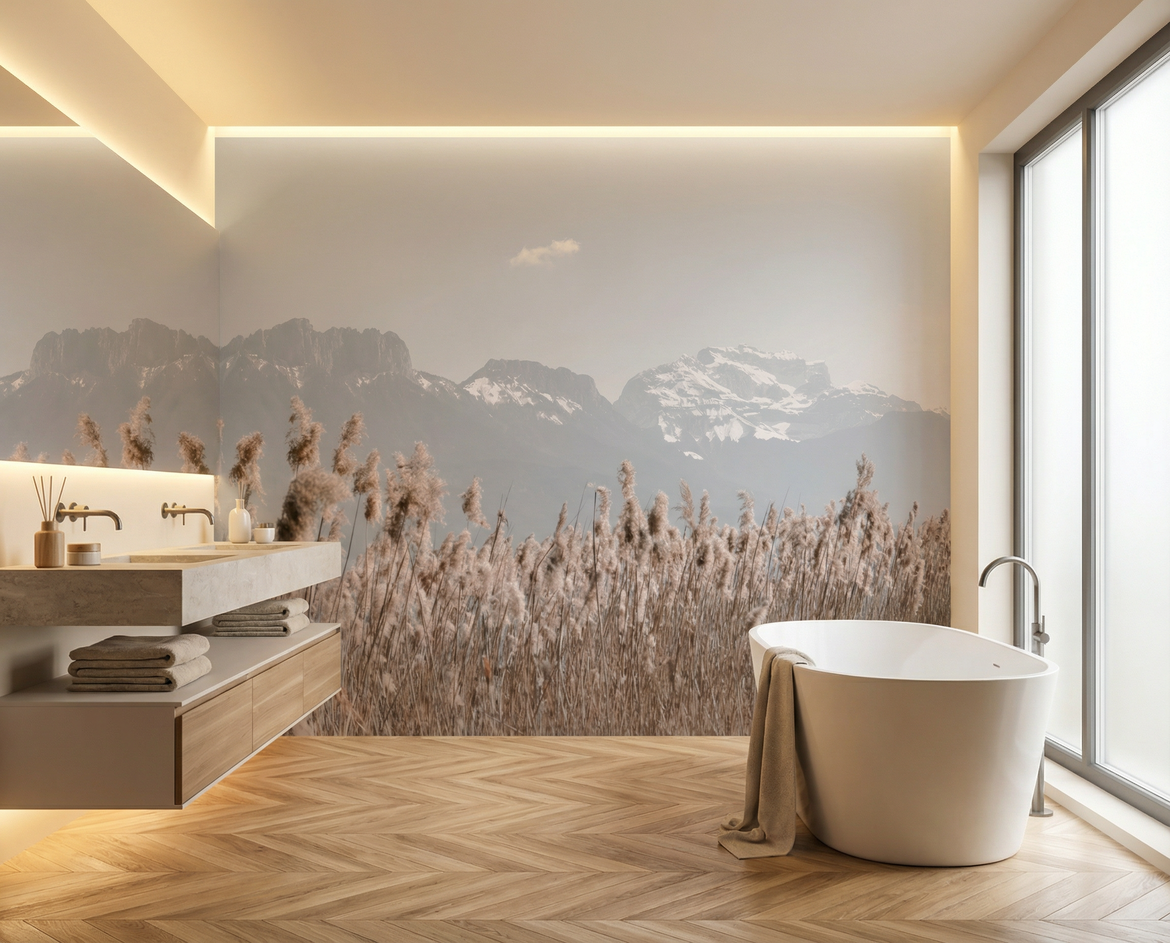 L’image joue sur des teintes douces, minérales et lumineuses, qui donnent de la profondeur à l’espace et installent une ambiance apaisante, presque méditative. Ce panoramique est idéal pour créer un mur signature dans un salon, une chambre, un espace d’accueil ou un bureau, en apportant une sensation d’évasion et de grand air.