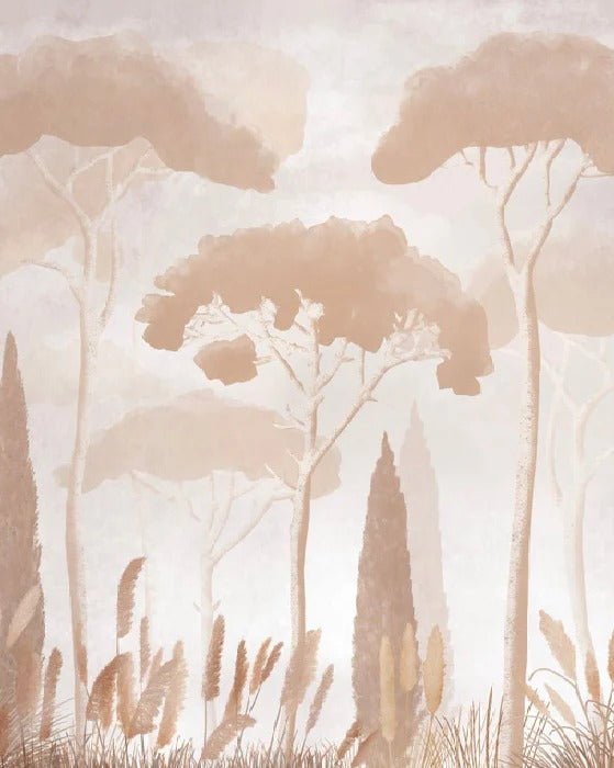 Papier peint sépia cyprès pins