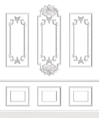 Papier peint trompe l’œil moulure blanche Chic Paris