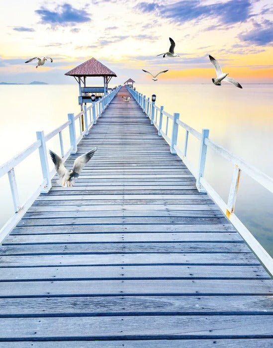 Papier peint trompe l’œil Ponton vue sur mer