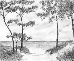 Tapete „Küstenkiefern und Dünen“ – Schwarz-Weiß